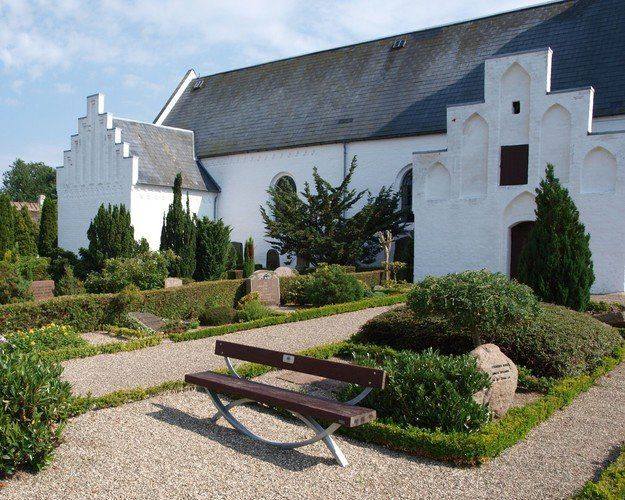 Kirkegården ligger rundt om kirken og omfatter både fællesgrav, private gravsteder og urnegrave.